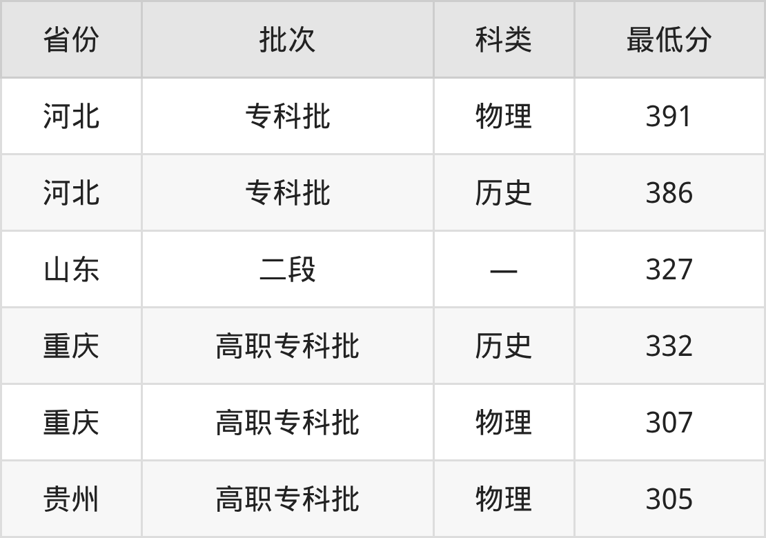 日照航海工程职业学院口腔医学技术专业录取分数线从305分到391分不等,最低分数线如下: