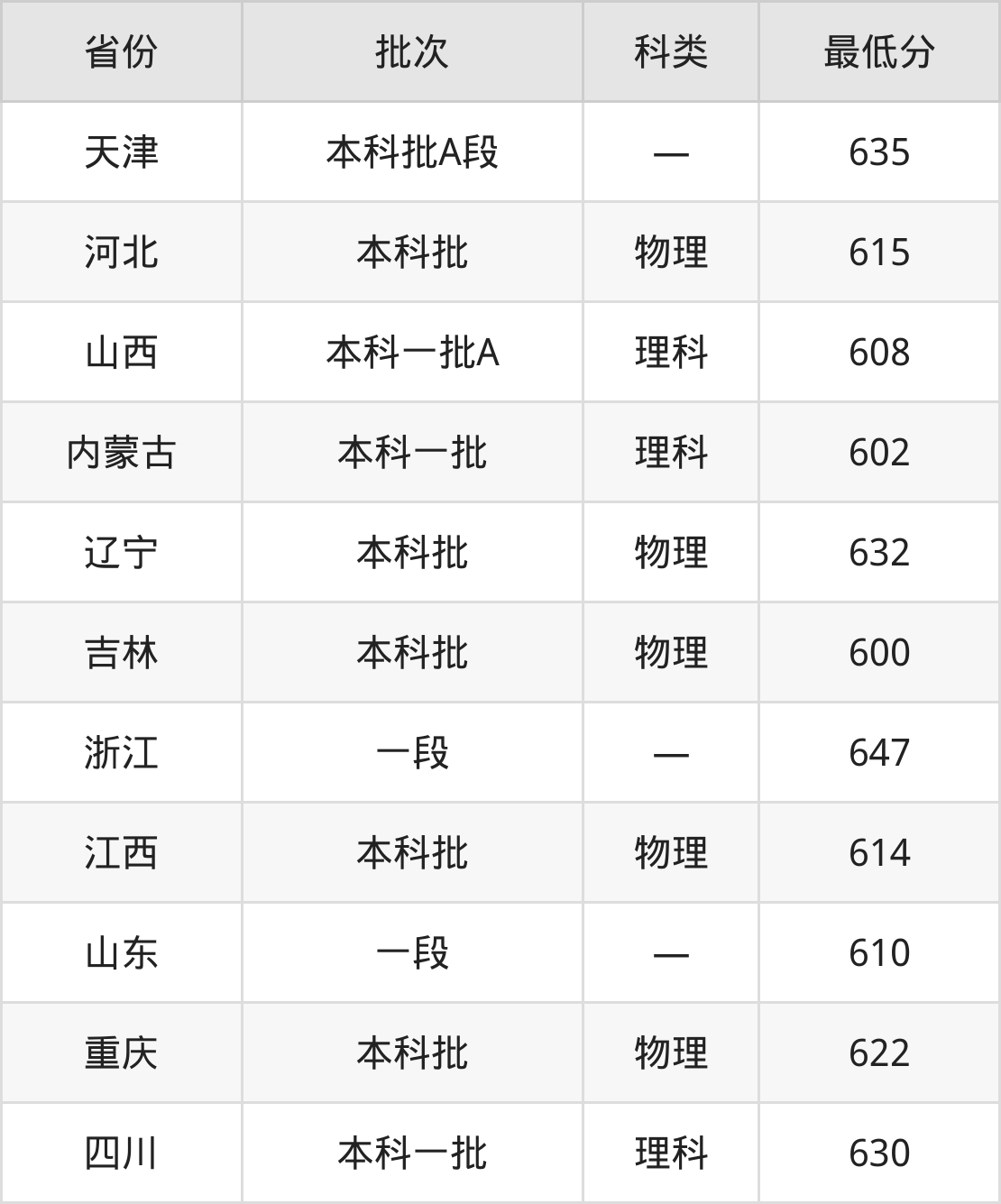 内蒙古:理科最低602分
