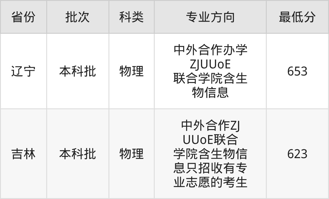 | 物理类 | 第201组( 中外合作) | 中外合作办学 ZJUUoE 联合学院含生 物信息 | 5 |