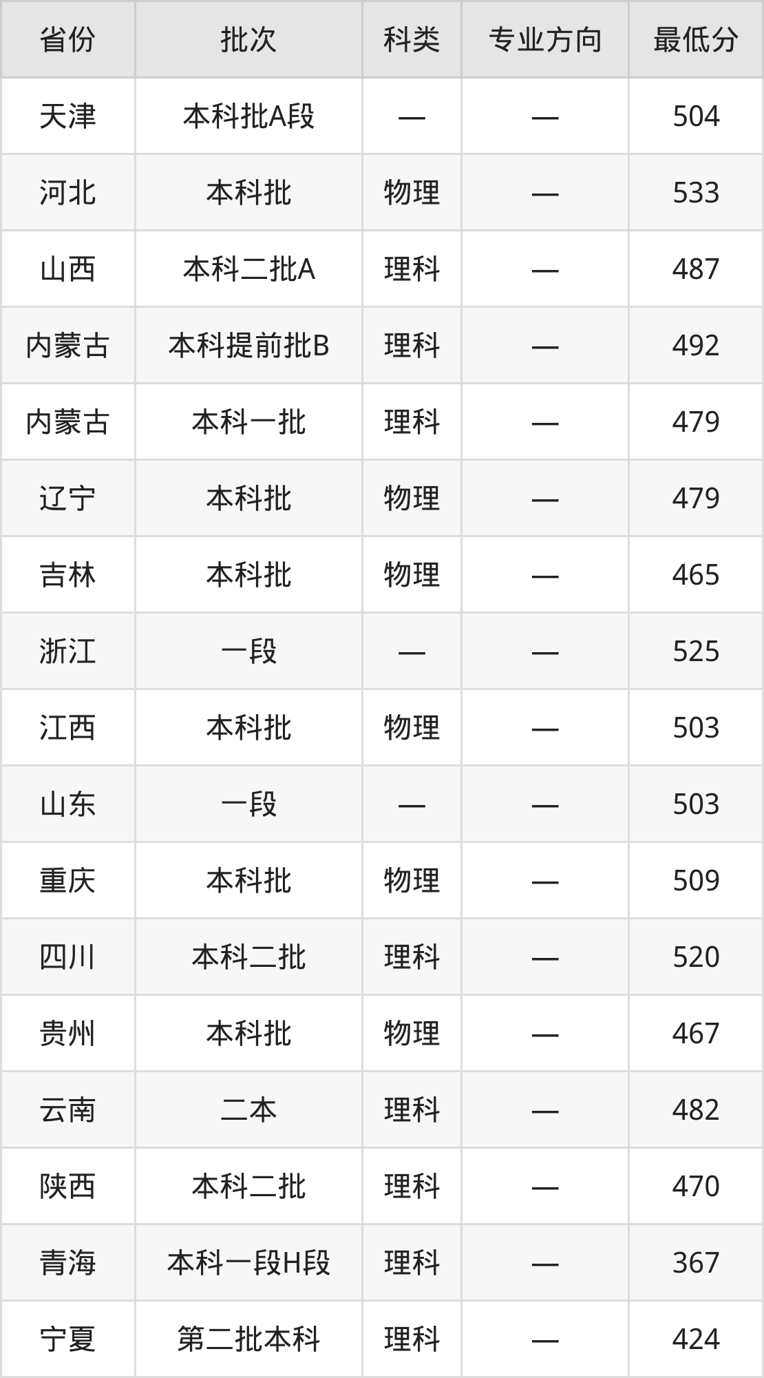 内蒙古科技大学机械类专业录取分数线从367分到533分不等,在部分地区的最低分数线如下: