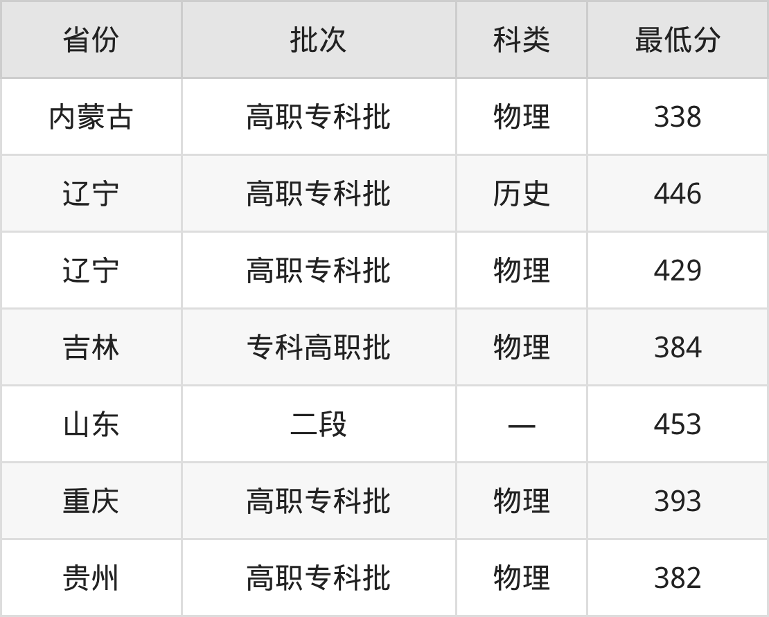 辽宁农业职业技术学院宠物医疗技术专业录取分数线从338分到453分不等,最低分数线如下: