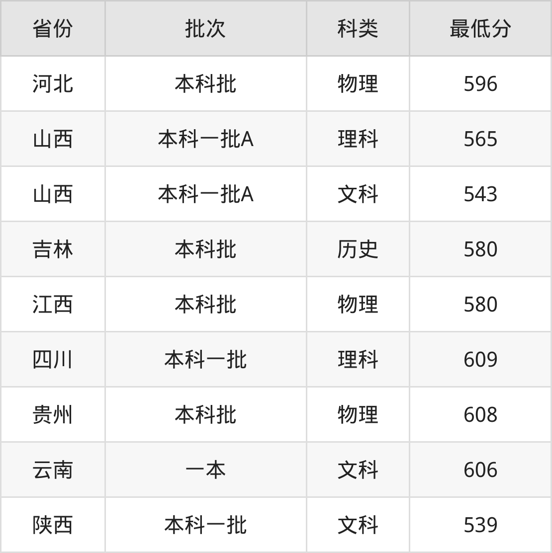 广东外语外贸大学法学专业录取分数线从539分到609分不等,最低分数线如下: