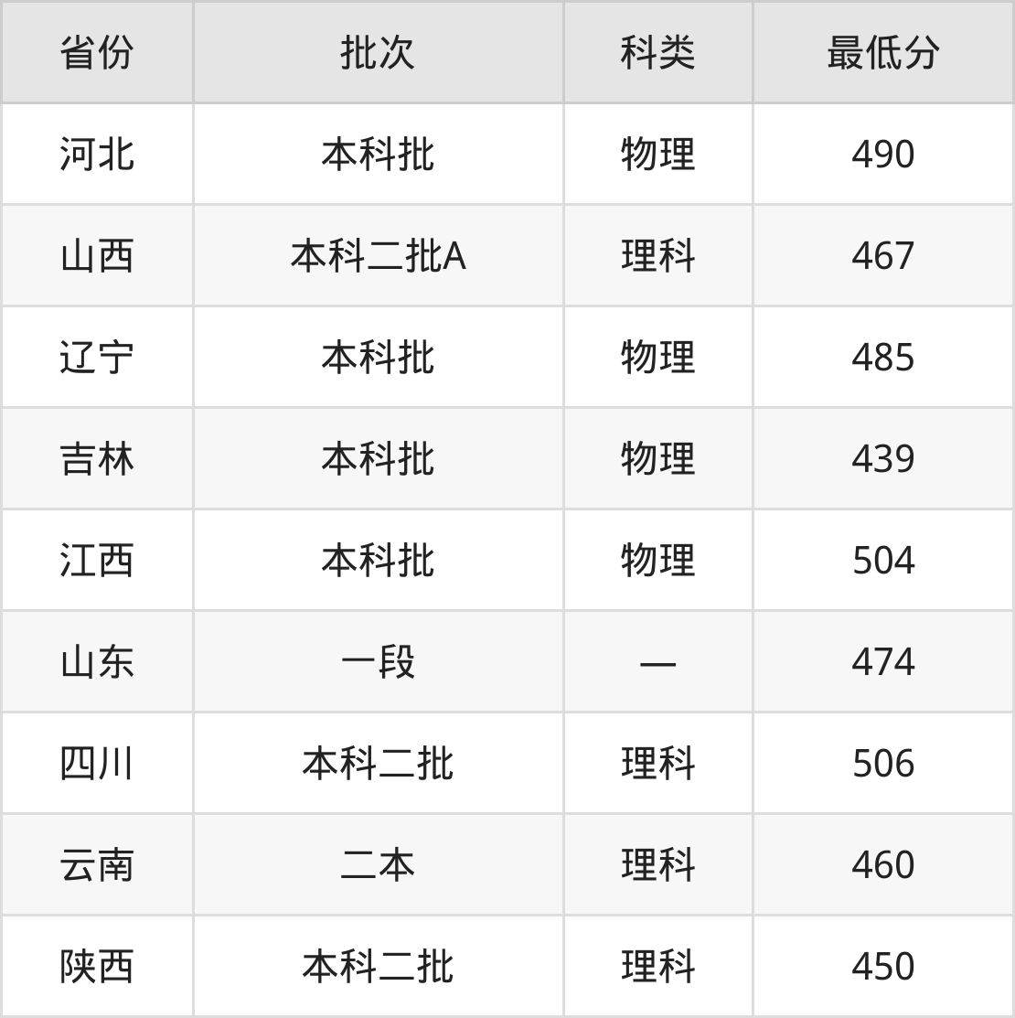 河北建筑工程学院给排水科学与工程专业在全国各省最低录取分数线为439分(吉林物理类),除此之外,在其余地区的最低分为辽宁物理类485分、山东474分、四川理科506分、陕西理科450分等,以上数据均为2024年数据,供2025年高考生参考。