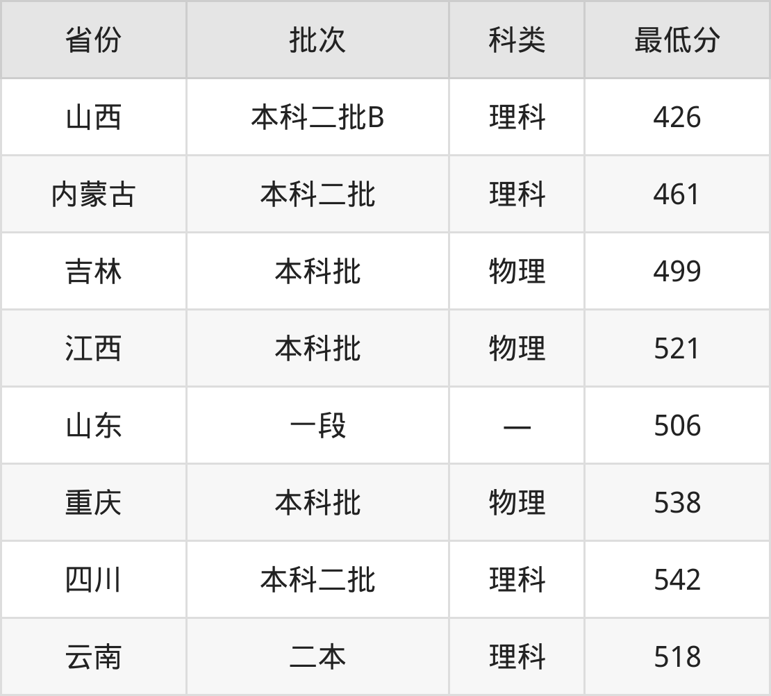 湖南医药学院康复治疗学专业在全国各省最低录取分数线为426分(山西理科),除此之外,在其余地区的最低分为山东506分、重庆物理类538分、四川理科542分、云南理科518分等,以上数据均为2024年数据,供2025年高考生参考。