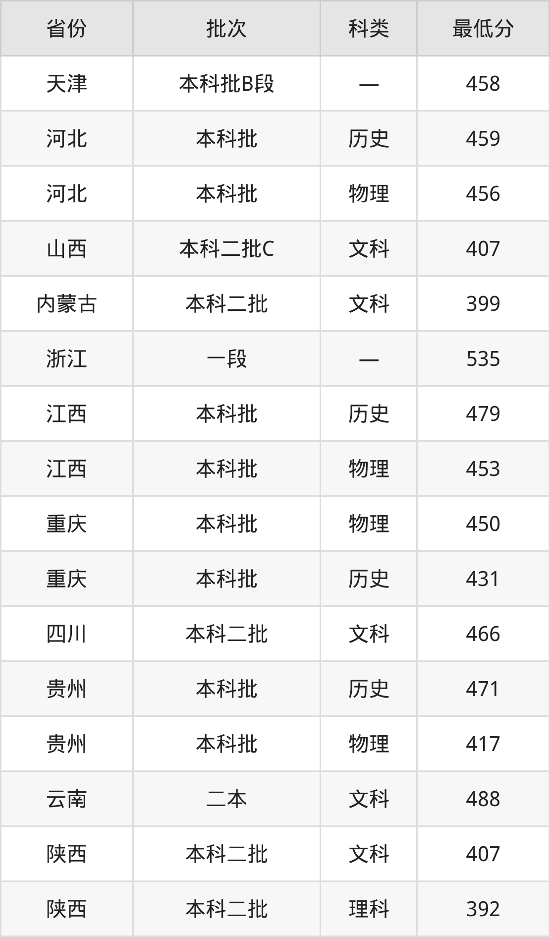 内蒙古:文科最低399分