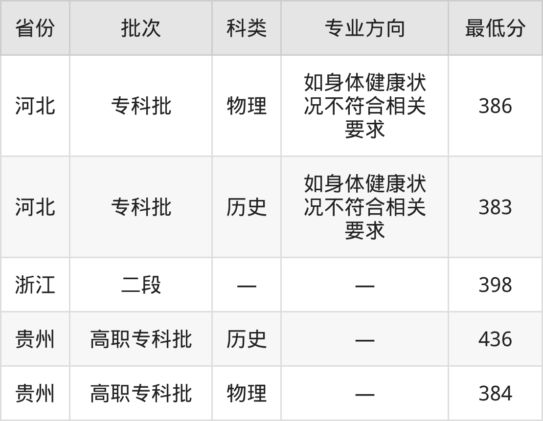 重庆公共运输职业学院铁道机车运用与维护专业录取分数线从383分到436分不等,最低分数线如下: