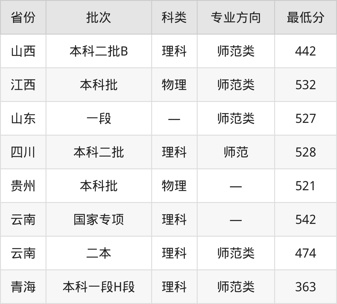闽南师范大学数学与应用数学专业在全国各省最低录取分数线为363分(青海理科),除此之外,在其余地区的最低分为四川理科528分、贵州物理类521分、云南理科474分、山西理科442分等,以上数据均为2024年数据,供2025年高考生参考。
