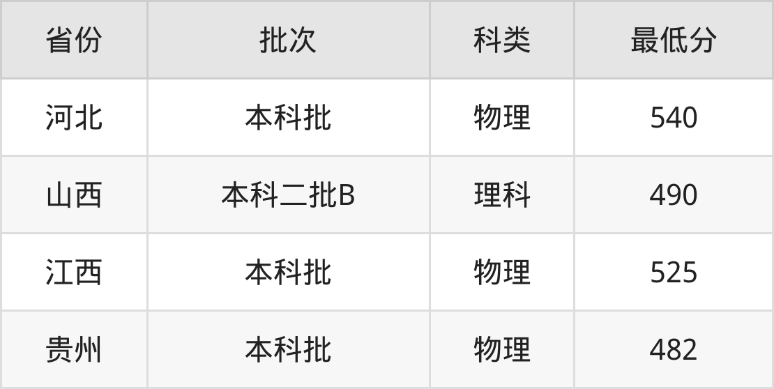 武汉商学院软件工程专业在全国各省最低录取分数线为482分(贵州物理类),除此之外,在其余地区的最低分为河北物理类540分、山西理科490分、江西物理类525分,以上数据均为2024年数据,供2025年高考生参考。