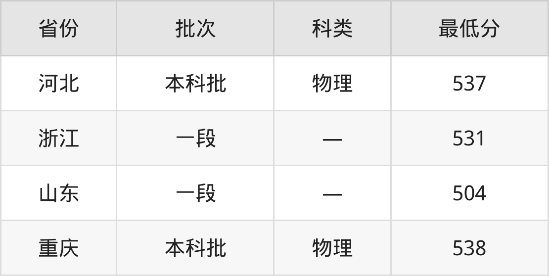 新疆医科大学医学检验技术专业在全国各省最低录取分数线为504分(山东),除此之外,在其余地区的最低分为重庆物理类538分、河北物理类537分、浙江531分,以上数据均为2025年数据,供2026年高考生参考。