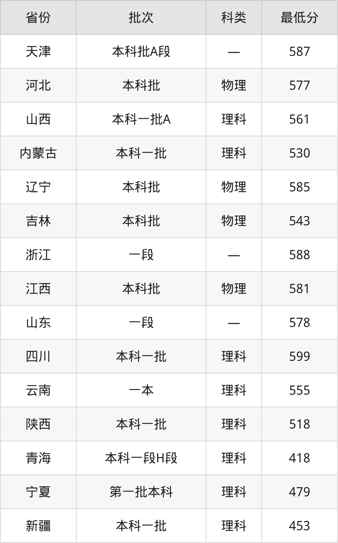 天津工业大学非织造材料与工程专业录取分数线从418分到599分不等,在部分地区的最低分数线如下: