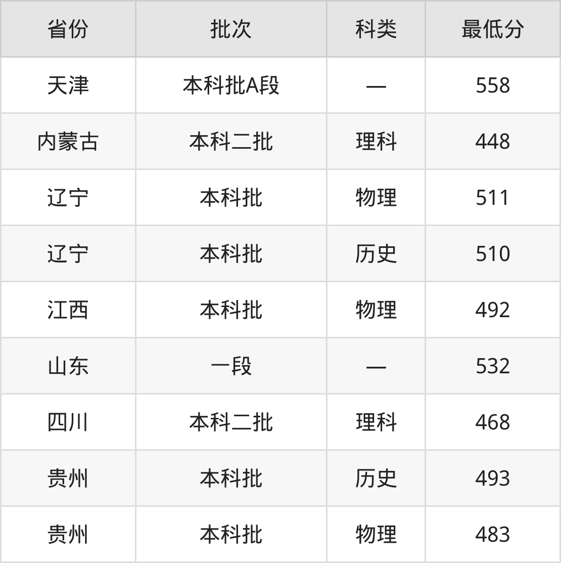 沈阳医学院助产学专业录取分数线从448分到558分不等,最低分数线如下: