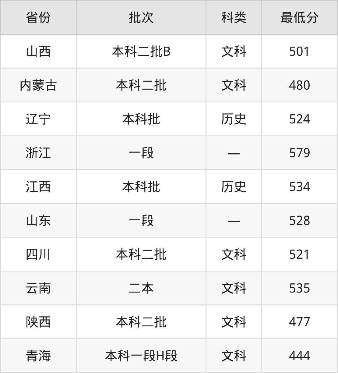 内蒙古:文科最低480分