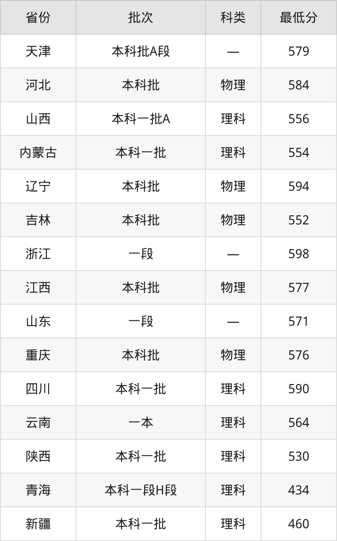 中北大学计算机科学与技术专业录取分数线从434分到598分不等,在部分地区的最低分数线如下: