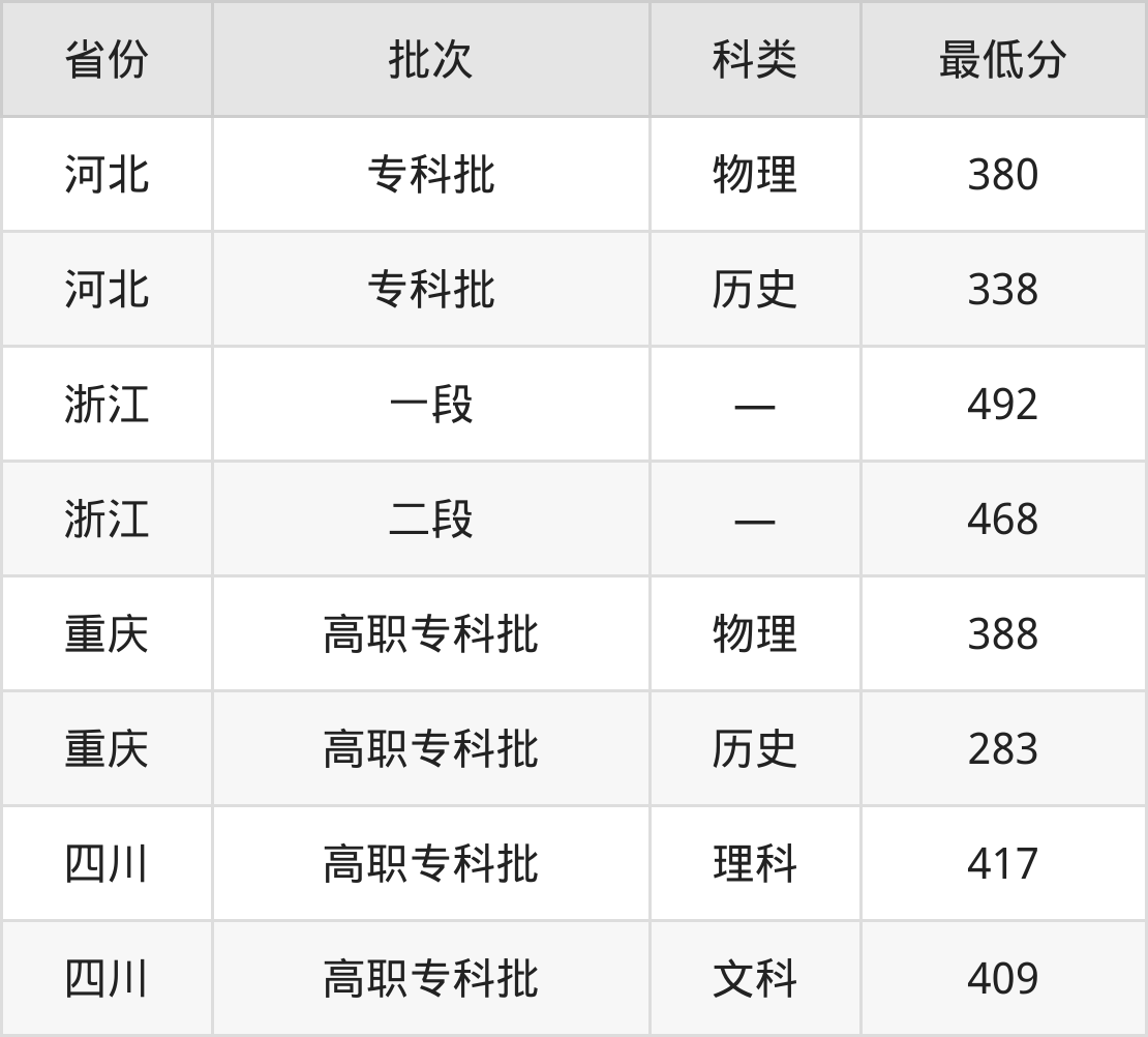 成都文理学院护理专业录取分数线从283分到492分不等,最低分数线如下: