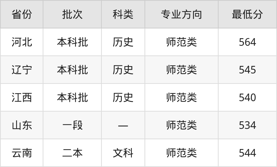 临沂大学英语专业录取分数线从534分到564分不等,最低分数线如下: