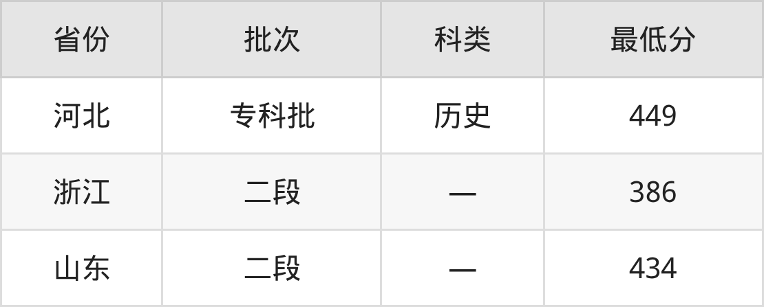兰州石化职业技术大学现代物流管理专业录取分数线从386分到449分不等,最低分数线如下: