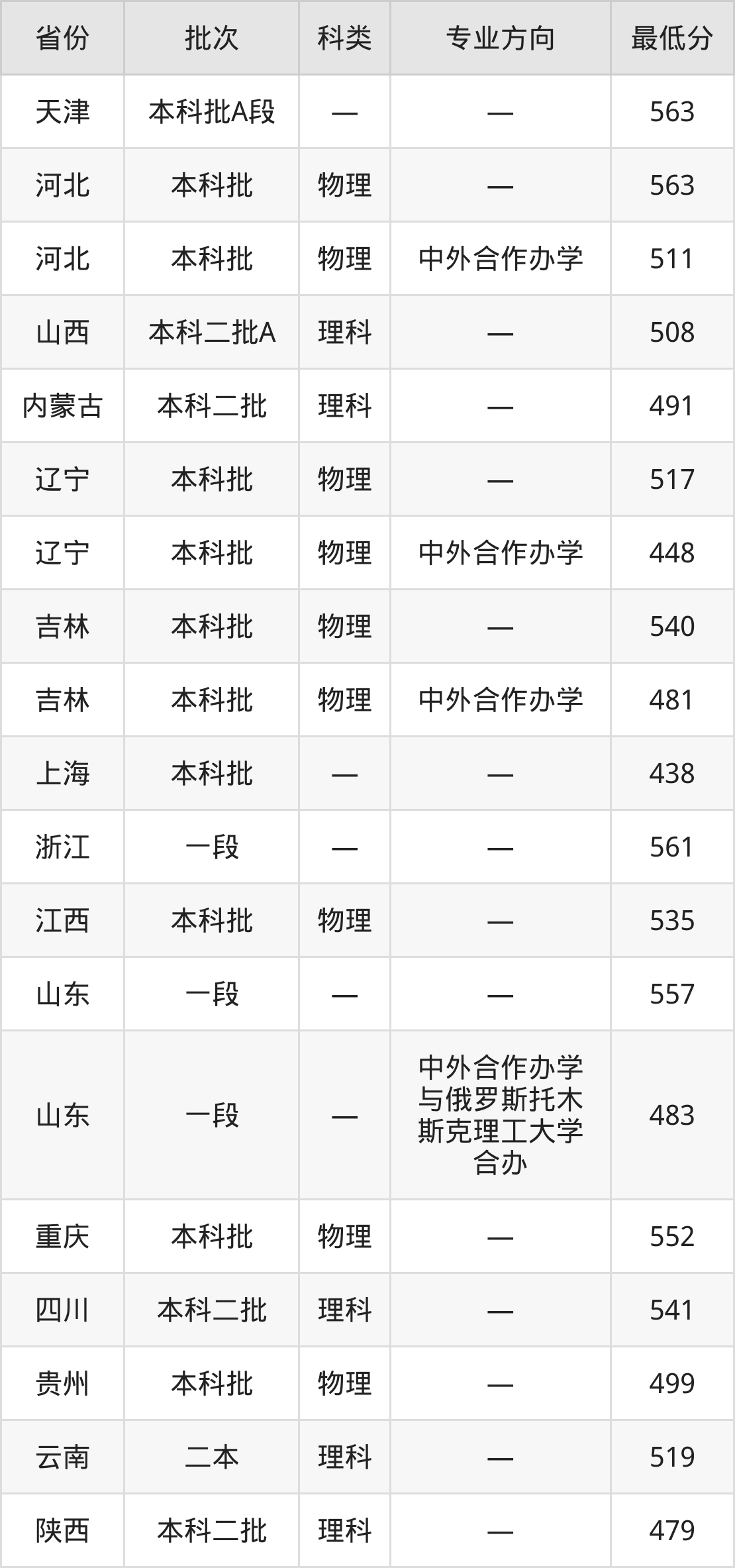 沈阳理工大学测控技术与仪器专业录取分数线从438分到563分不等,在部分地区的最低分数线如下: