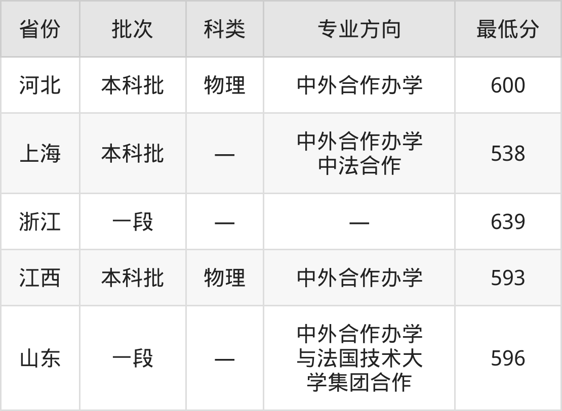 上海大学机械工程专业录取分数线从538分到639分不等,最低分数线如下: