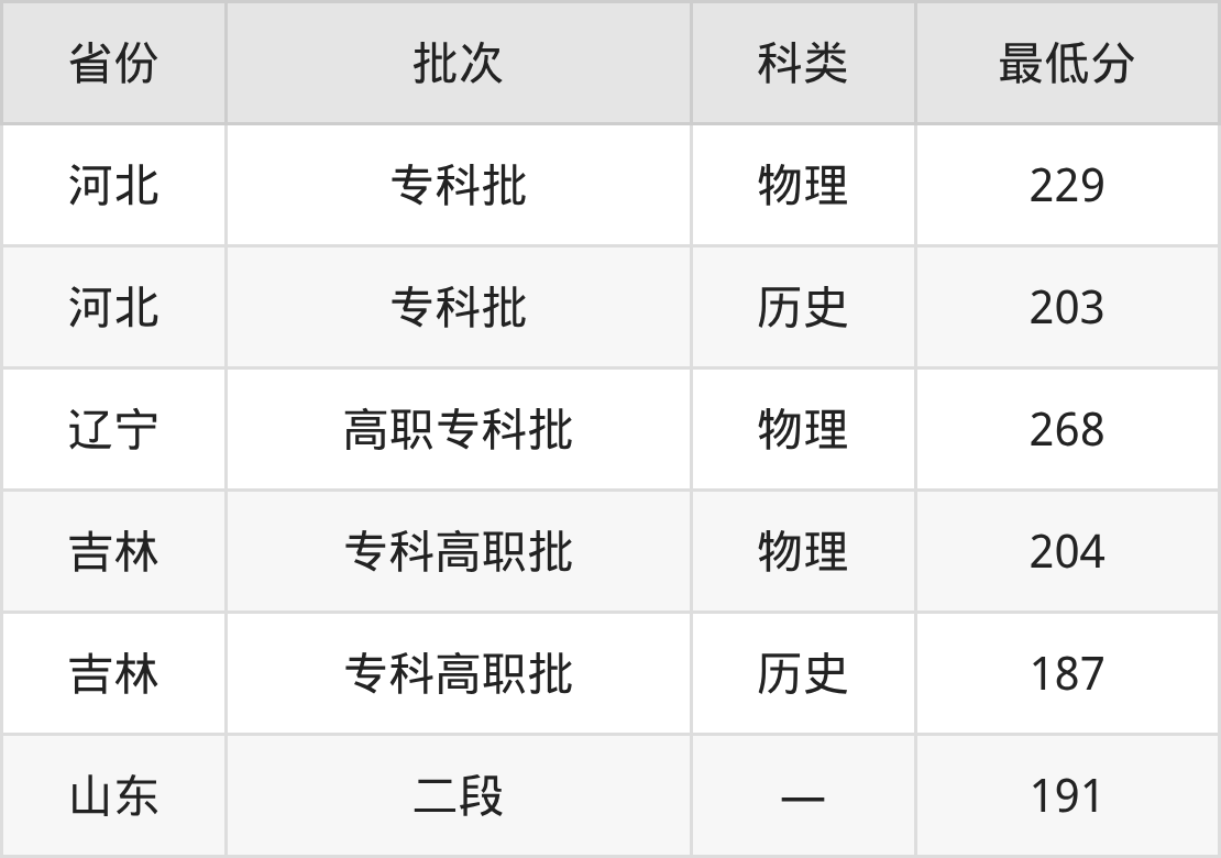 长春数字科技职业学院智能机器人技术专业录取分数线从187分到268分不等,最低分数线如下: