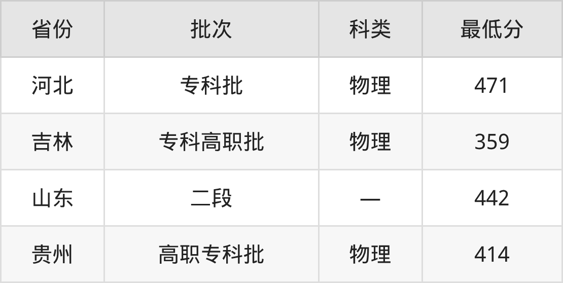 黄河水利职业技术大学工程造价专业在全国各省最低录取分数线为359分(吉林物理类),除此之外,在其余地区的最低分为河北物理类471分、山东442分、贵州物理类414分,以上数据均为2025年数据,供2026年高考生参考。