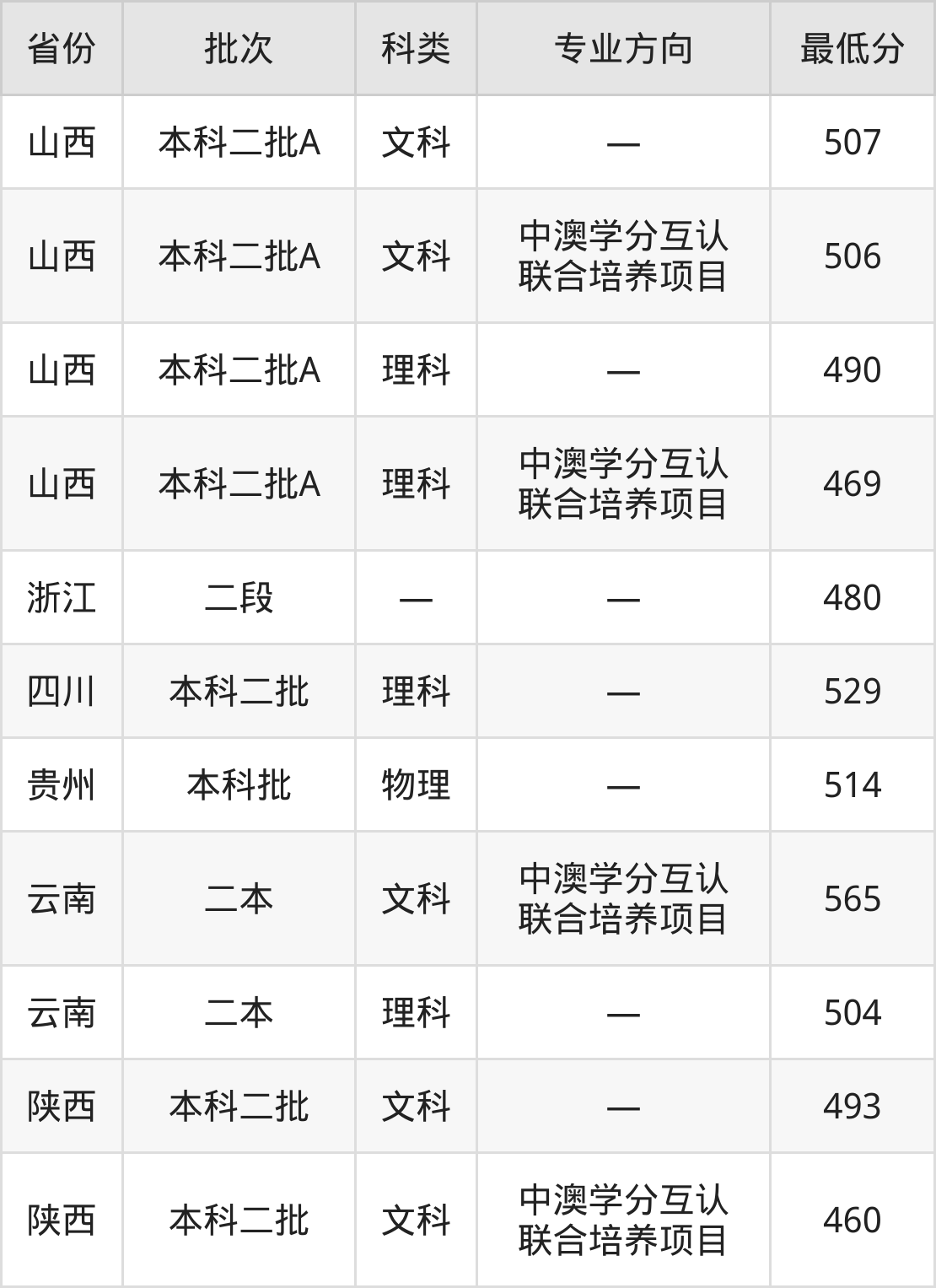 陕西:文科最低460分