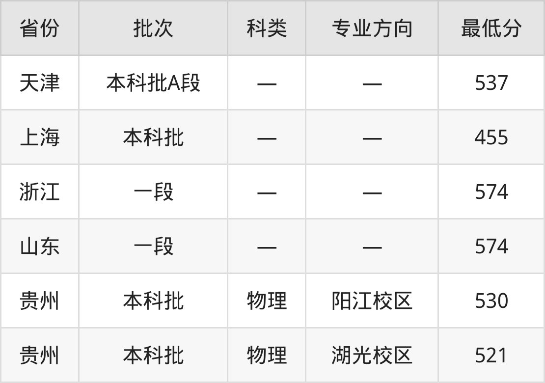 广东海洋大学计算机科学与技术专业录取分数线从455分到574分不等,最低分数线如下: