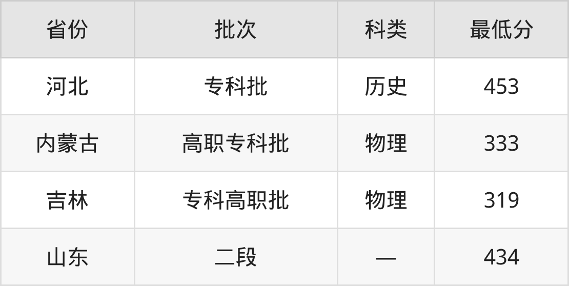 湖南交通职业技术学院道路与桥梁工程技术专业录取分数线从319分到453分不等,最低分数线如下:
