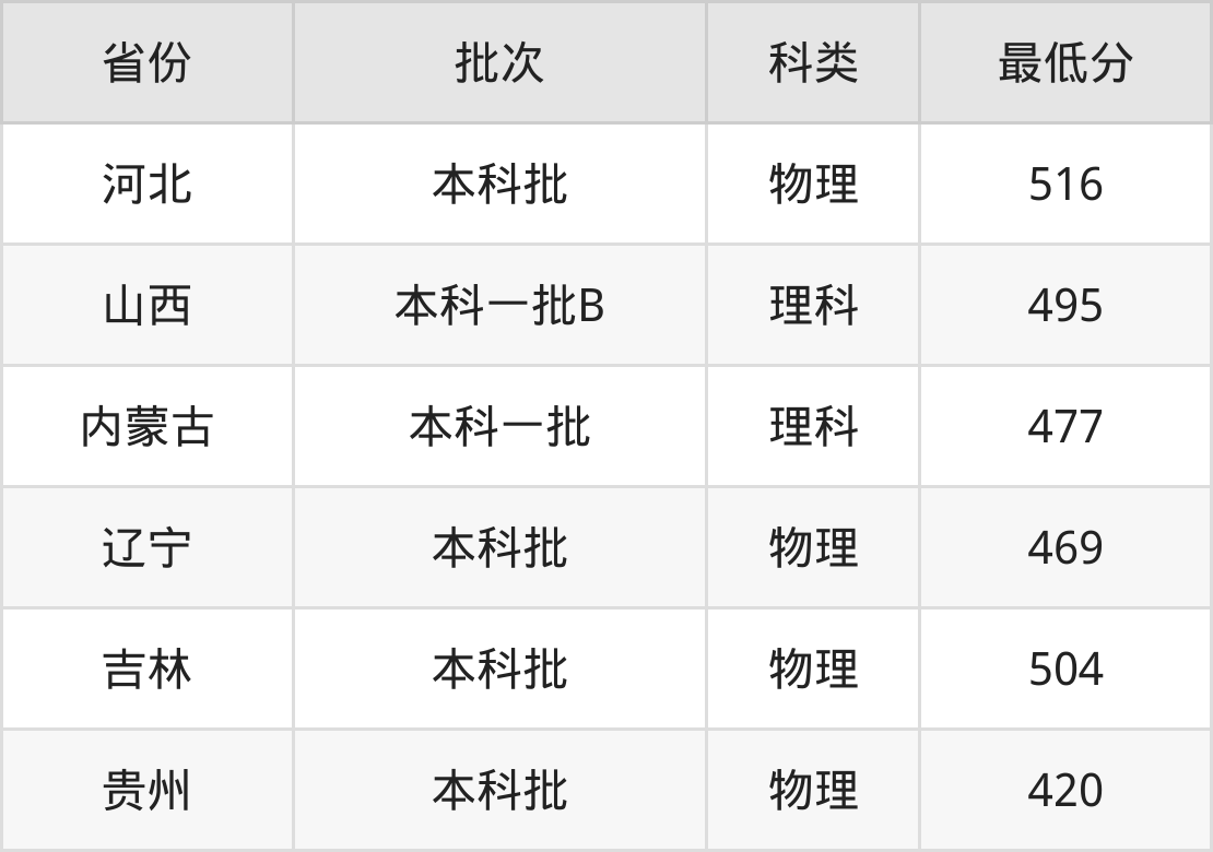内蒙古:理科最低477分