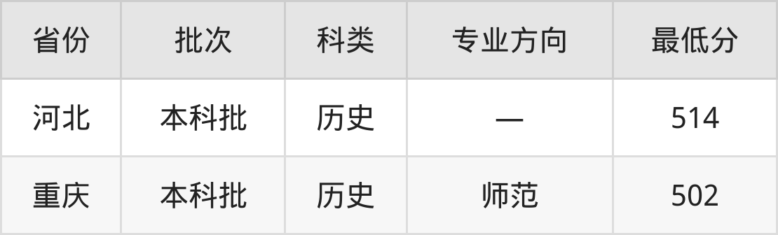 河西学院小学教育专业录取分数线从502分到514分不等,最低分数线如下: