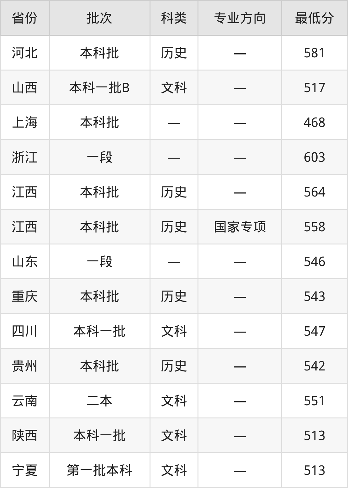 济南大学新闻传播学类专业录取分数线从468分到603分不等,在部分地区的最低分数线如下: