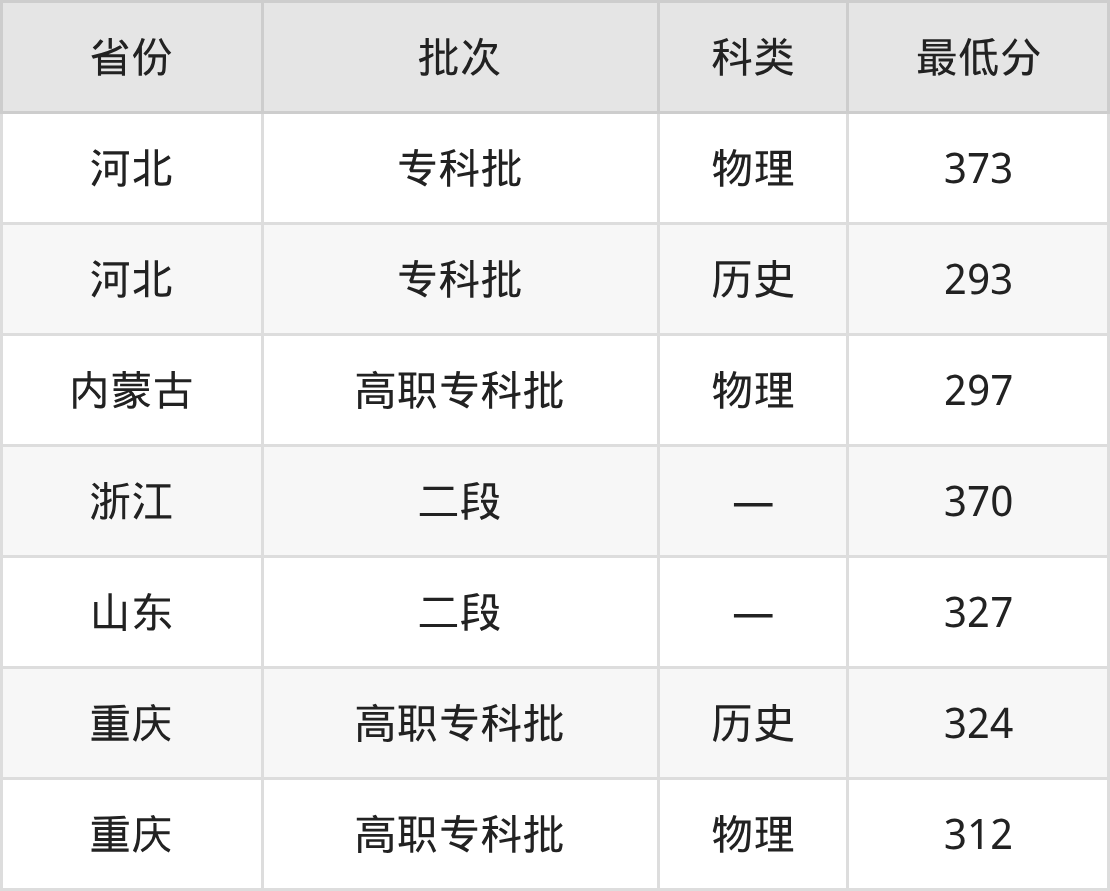 重庆科技职业学院计算机应用技术专业录取分数线从293分到373分不等,最低分数线如下: