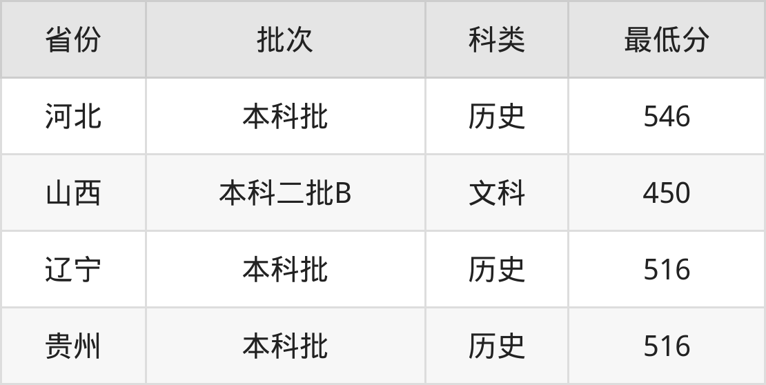 湖北文理学院地理科学专业在全国各省最低录取分数线为450分(山西文科),除此之外,在其余地区的最低分为贵州历史类516分、河北历史类546分、辽宁历史类516分,以上数据均为2024年数据,供2025年高考生参考。