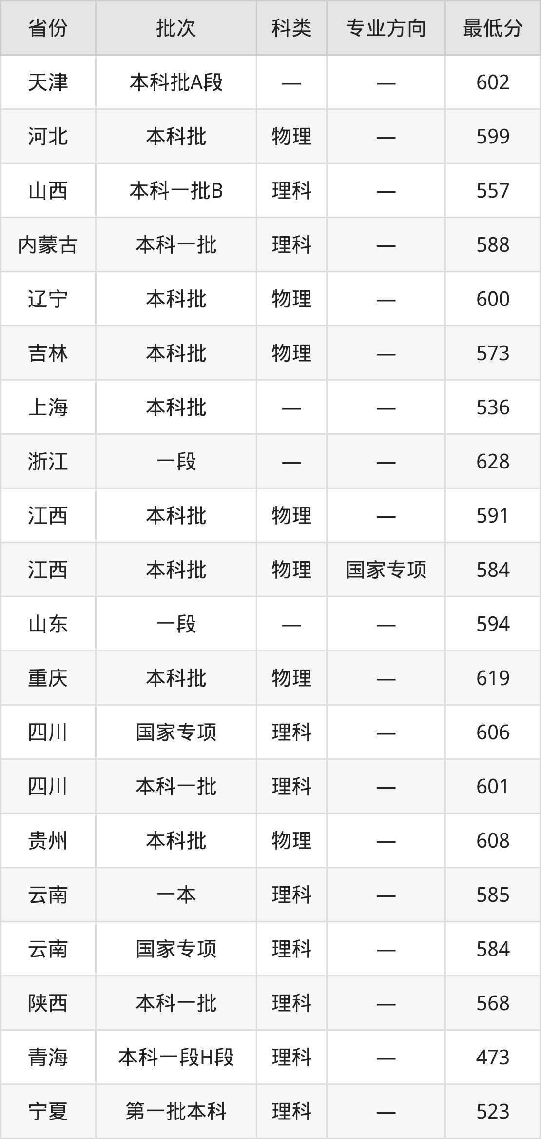 山西:理科最低557分