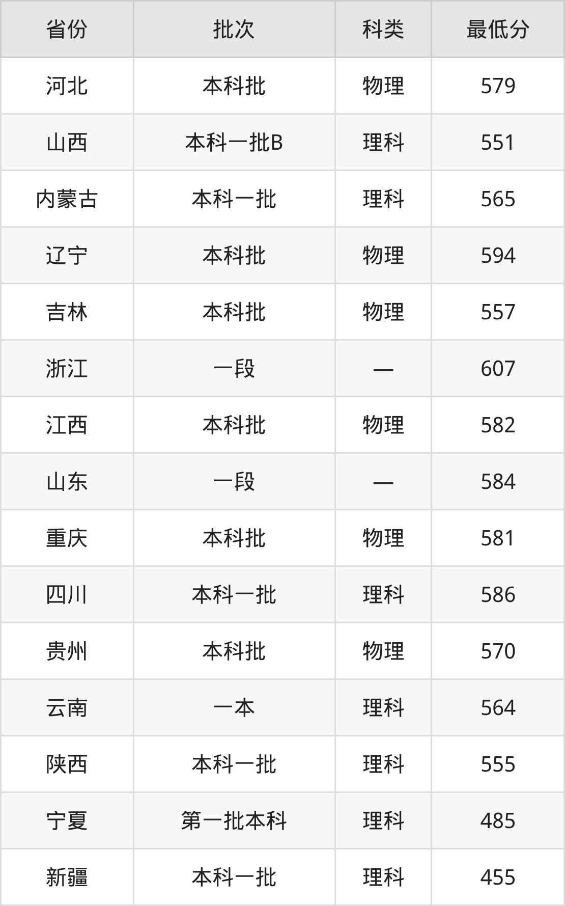 山西:理科最低551分