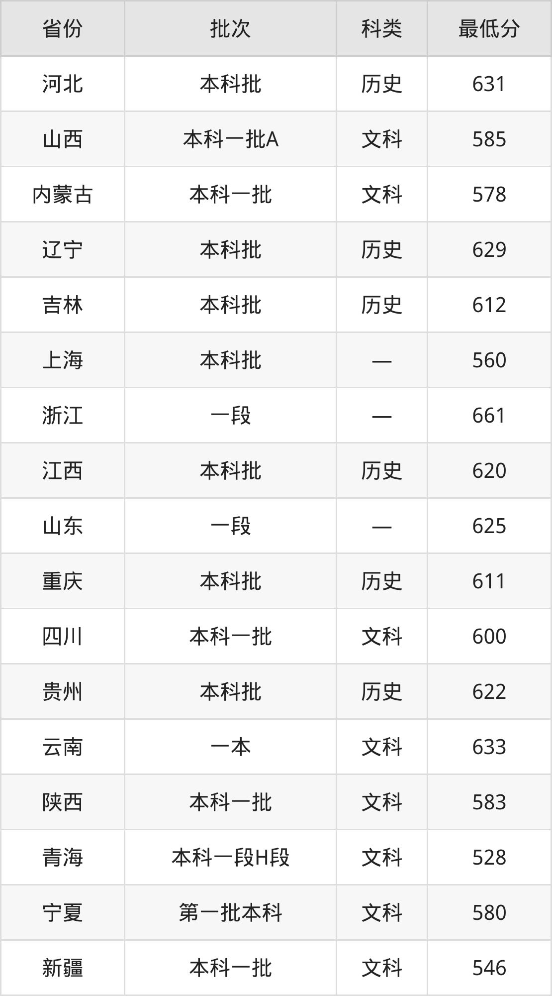 湖南大学汉语言文学专业录取分数线从528分到661分不等,在部分地区的最低分数线如下: