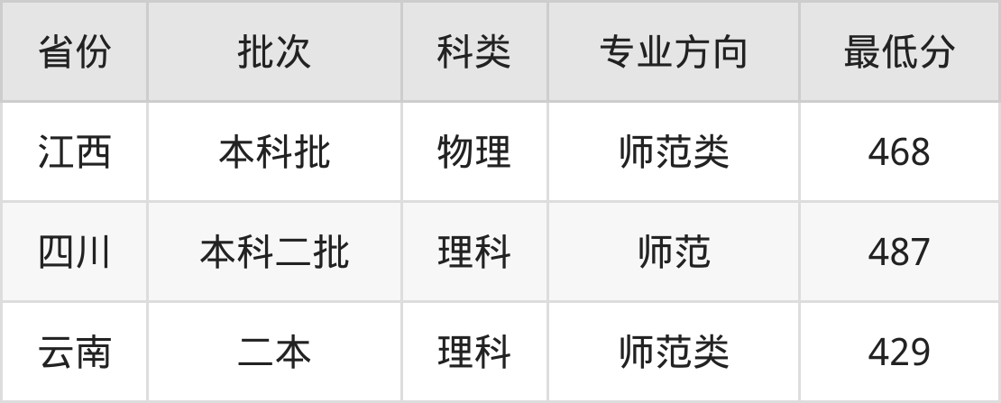 南京师范大学泰州学院物理学专业录取分数线从429分到487分不等,最低分数线如下: