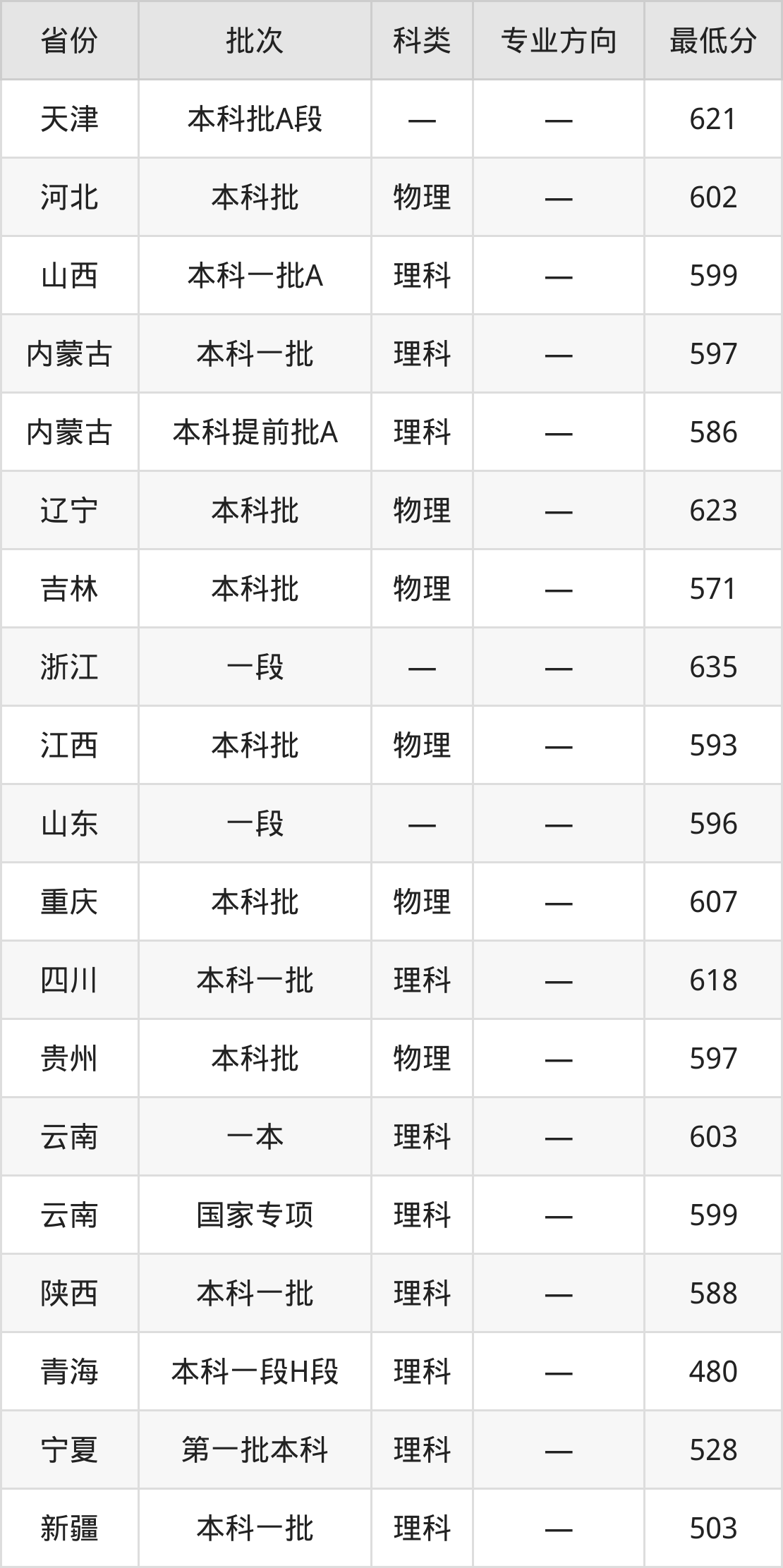 长安大学机械类专业录取分数线从480分到635分不等,在部分地区的最低分数线如下: