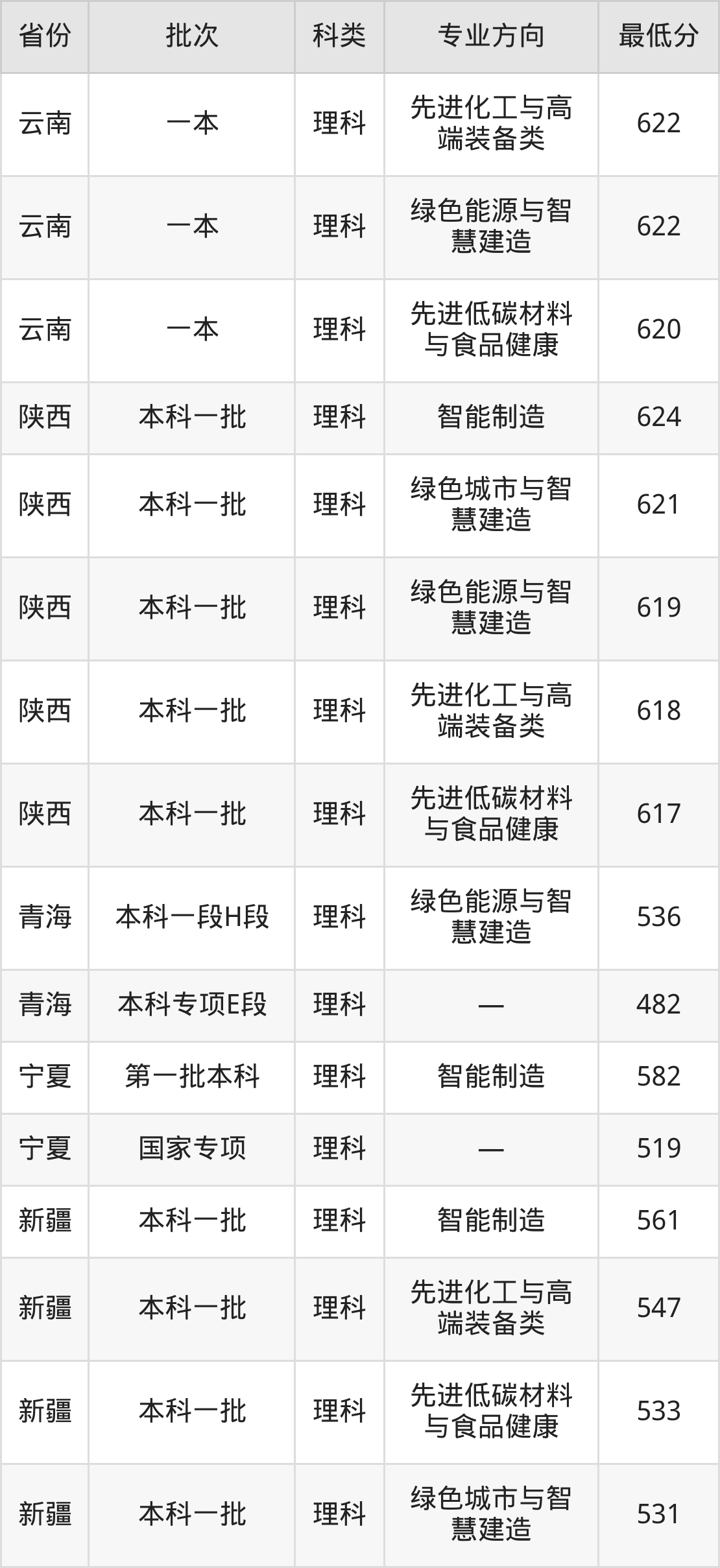 四川大学工科试验班专业录取分数线从482分到660分不等,在部分地区的最低分数线如下: