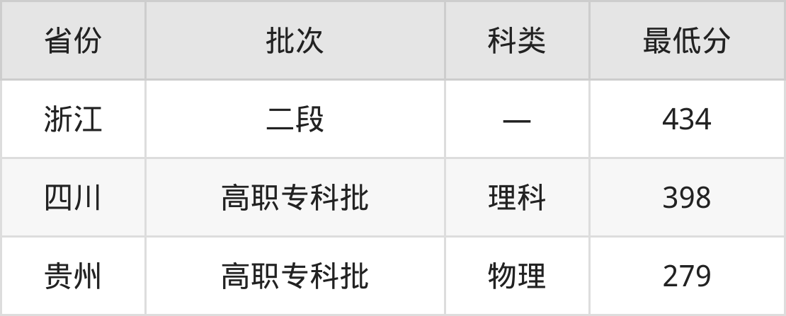 宁德职业技术学院数字化设计与制造技术专业在全国各省最低录取分数线为279分(贵州物理类),除此之外,在其余地区的最低分为浙江434分、四川理科398分,以上数据均为2024年数据,供2025年高考生参考。