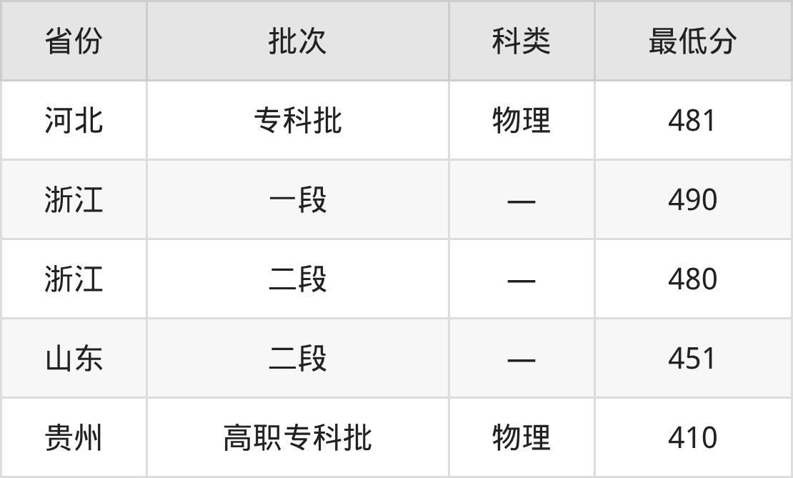 南京城市职业学院计算机应用技术专业在全国各省最低录取分数线为410分(贵州物理类),除此之外,在其余地区的最低分为河北物理类481分、浙江480分、山东451分,以上数据均为2025年数据,供2026年高考生参考。