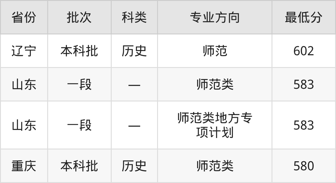 山东师范大学思想政治教育专业录取分数线从580分到602分不等,最低分数线如下: