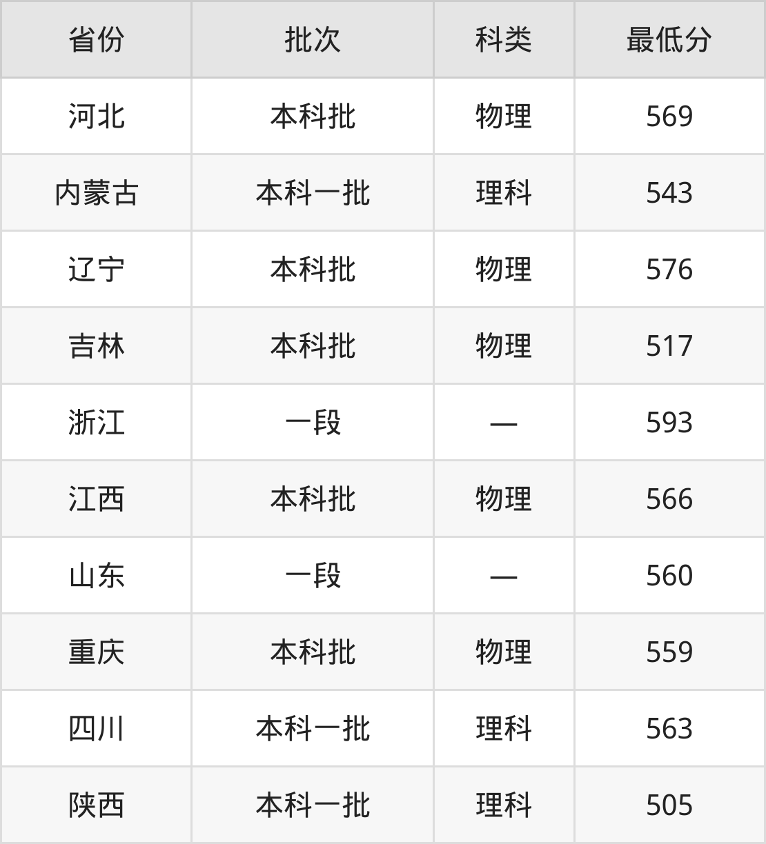 内蒙古:理科最低543分