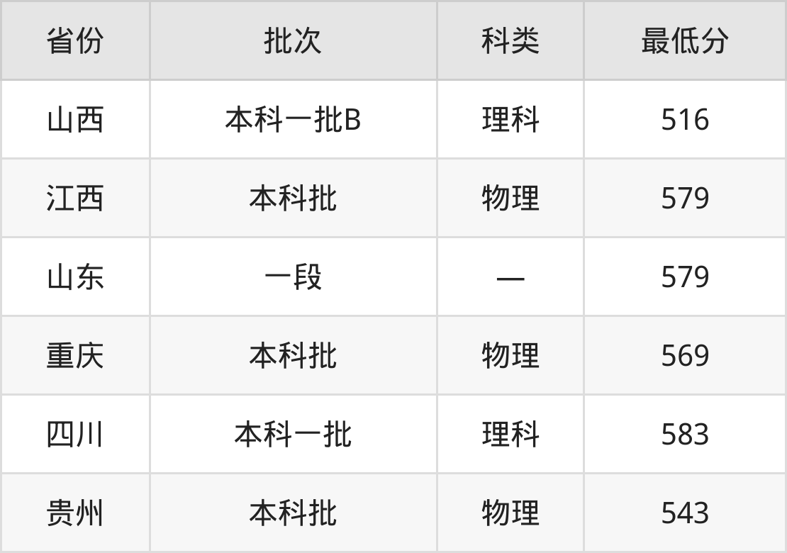 湖北大学地理信息科学专业在全国各省最低录取分数线为516分(山西理科),除此之外,在其余地区的最低分为四川理科583分、贵州物理类543分、江西物理类579分、山东579分等,以上数据均为2024年数据,供2025年高考生参考。