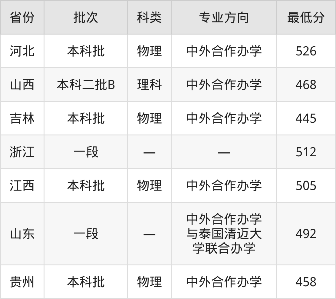 | 物理类 | 204组(中 外合作) | 中外合作办学 | 5 |