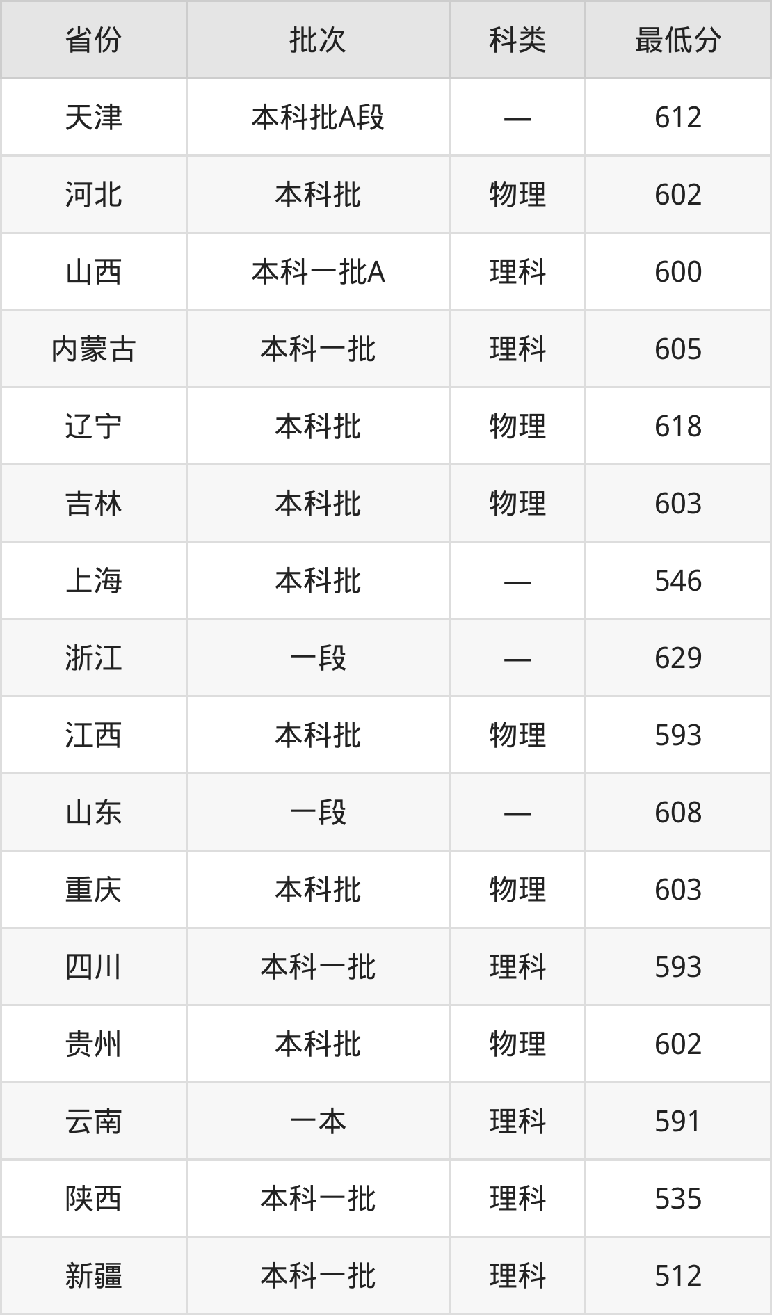 哈尔滨医科大学医学影像学专业录取分数线从512分到629分不等,在部分地区的最低分数线如下: