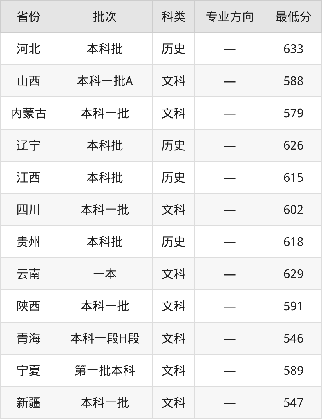 哈尔滨工业大学经济管理试验班专业录取分数线从546分到633分不等,在部分地区的最低分数线如下:
