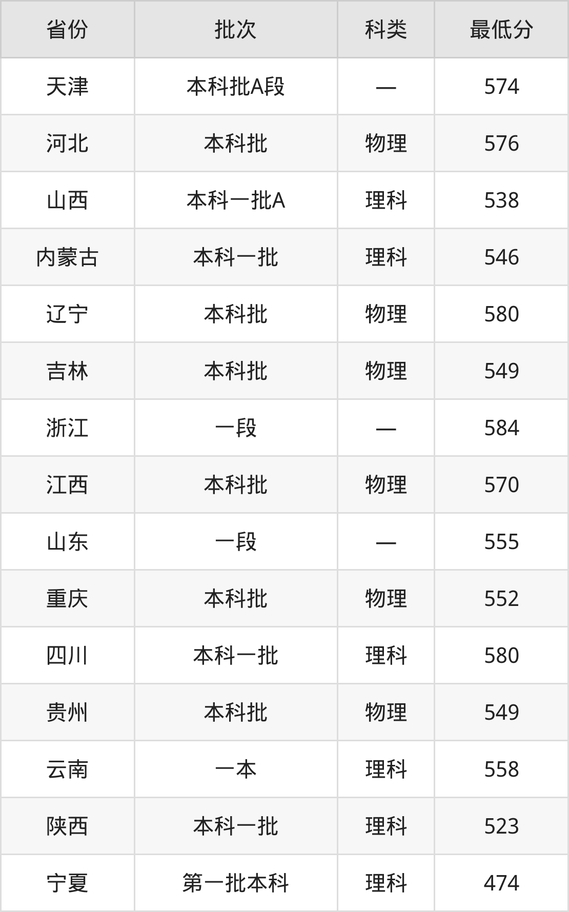 中北大学特种能源技术与工程专业录取分数线从474分到584分不等,在部分地区的最低分数线如下: