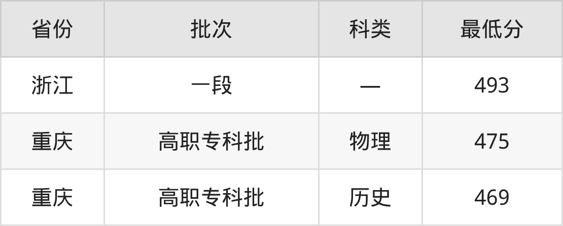 天津市职业大学视觉训练与康复专业在全国各省最低录取分数线为469分(重庆历史类),除此之外,在其余地区的最低分为浙江493分,以上数据均为2025年数据,供2026年高考生参考。