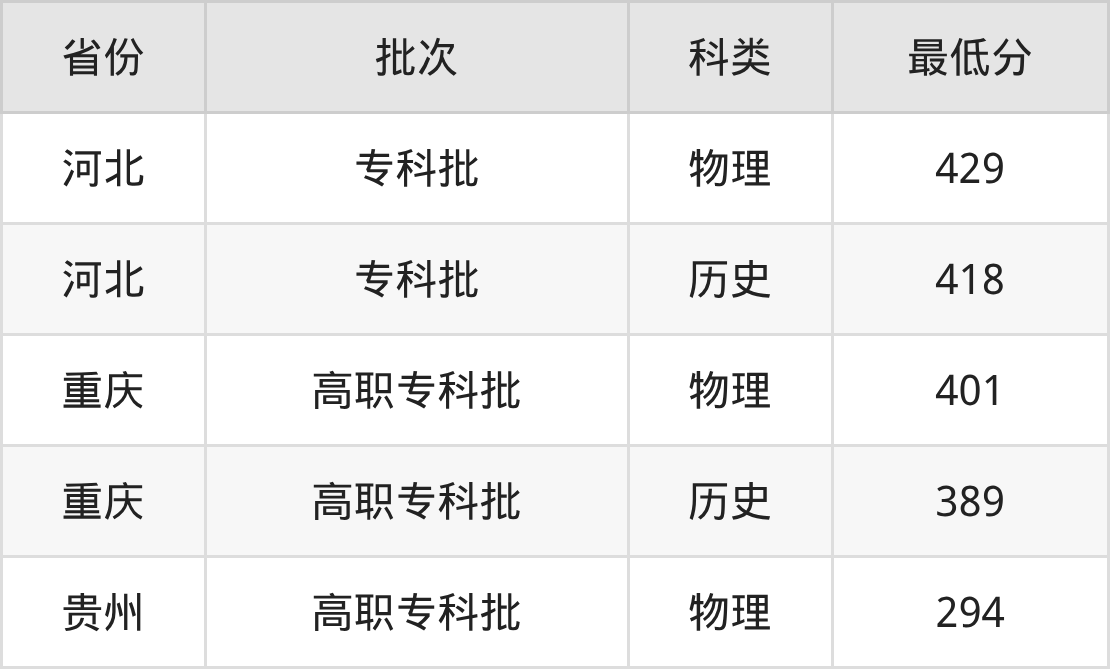 三明医学科技职业学院智能控制技术专业在全国各省最低录取分数线为294分(贵州物理类),除此之外,在其余地区的最低分为河北历史类418分、重庆历史类389分,以上数据均为2025年数据,供2026年高考生参考。