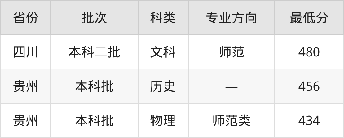 广东白云学院小学教育专业在全国各省最低录取分数线为434分(贵州物理类),除此之外,在其余地区的最低分为四川文科480分,以上数据均为2024年数据,供2025年高考生参考。